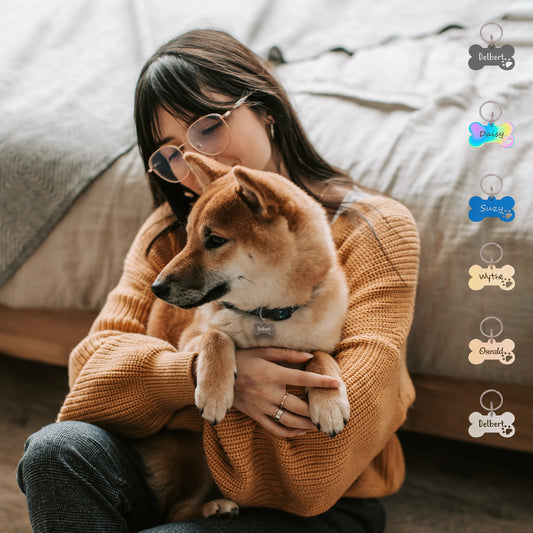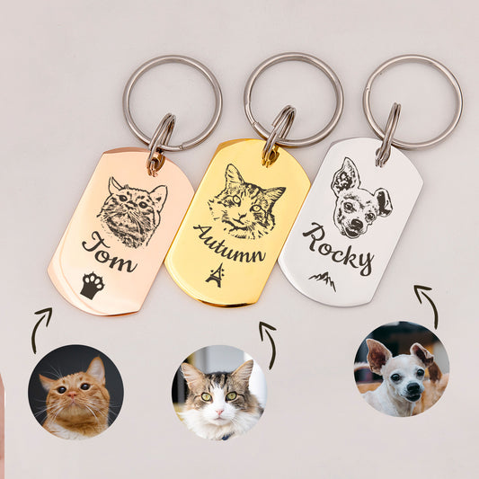 Personalized Pet Portrait Dog Bone Pet ID Tag