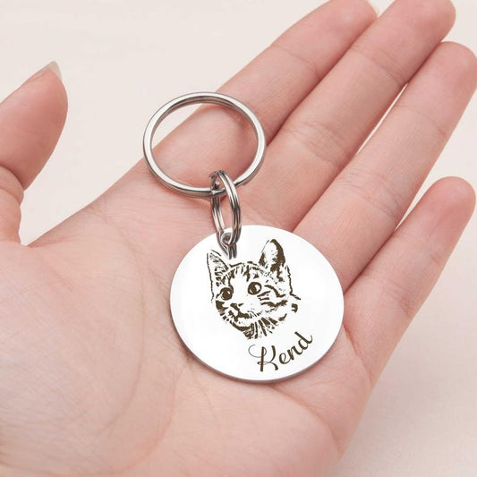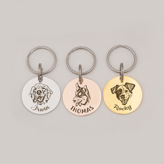 Round Pet Portrait Pet Id Dog Tag and Necklace
